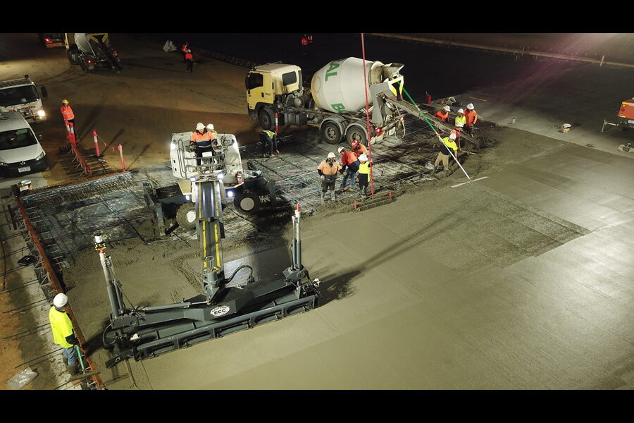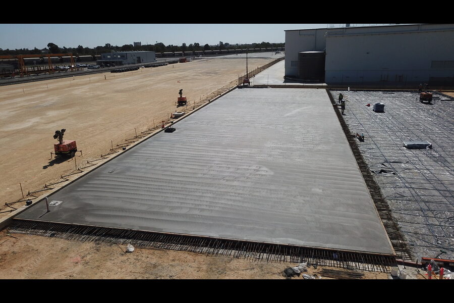 The Mainfreight logistics facility at Roe Highway Logistics Park required a heavy-duty concrete pavement capable of supporting extreme loading conditions while maintaining long-term durability and operational efficiency.